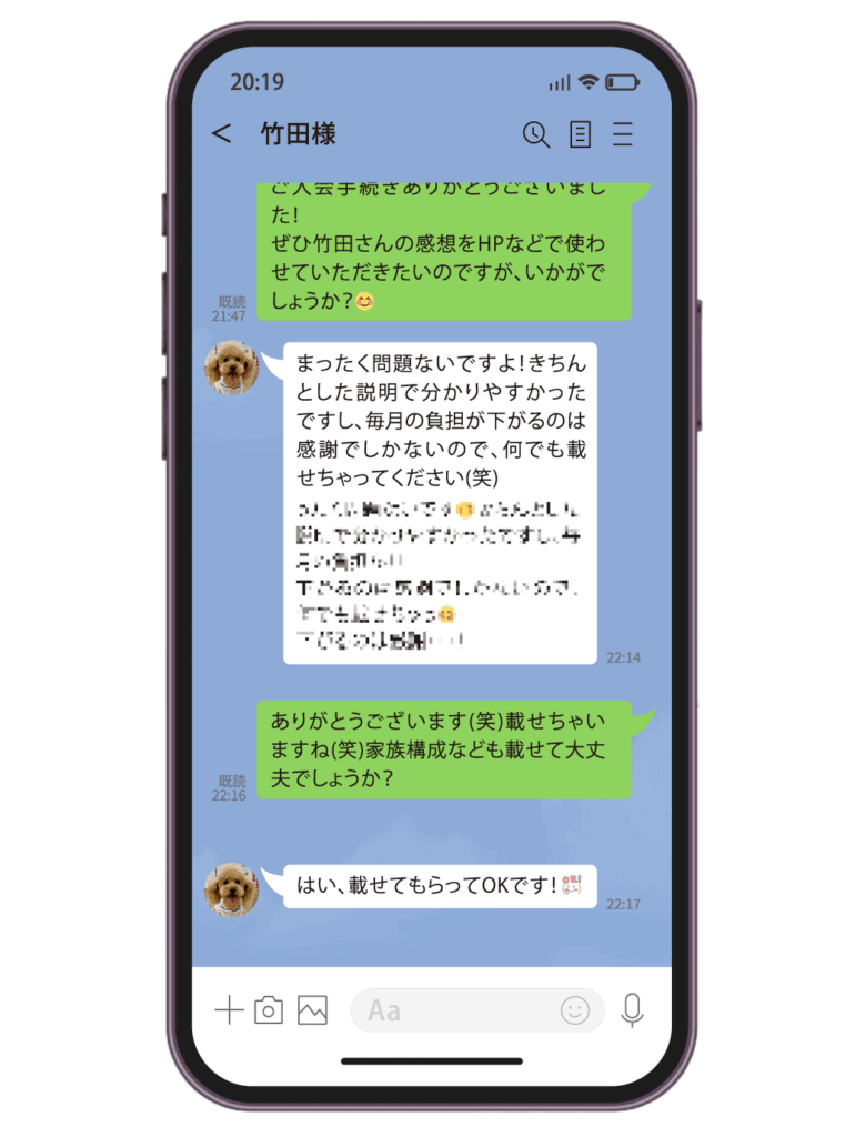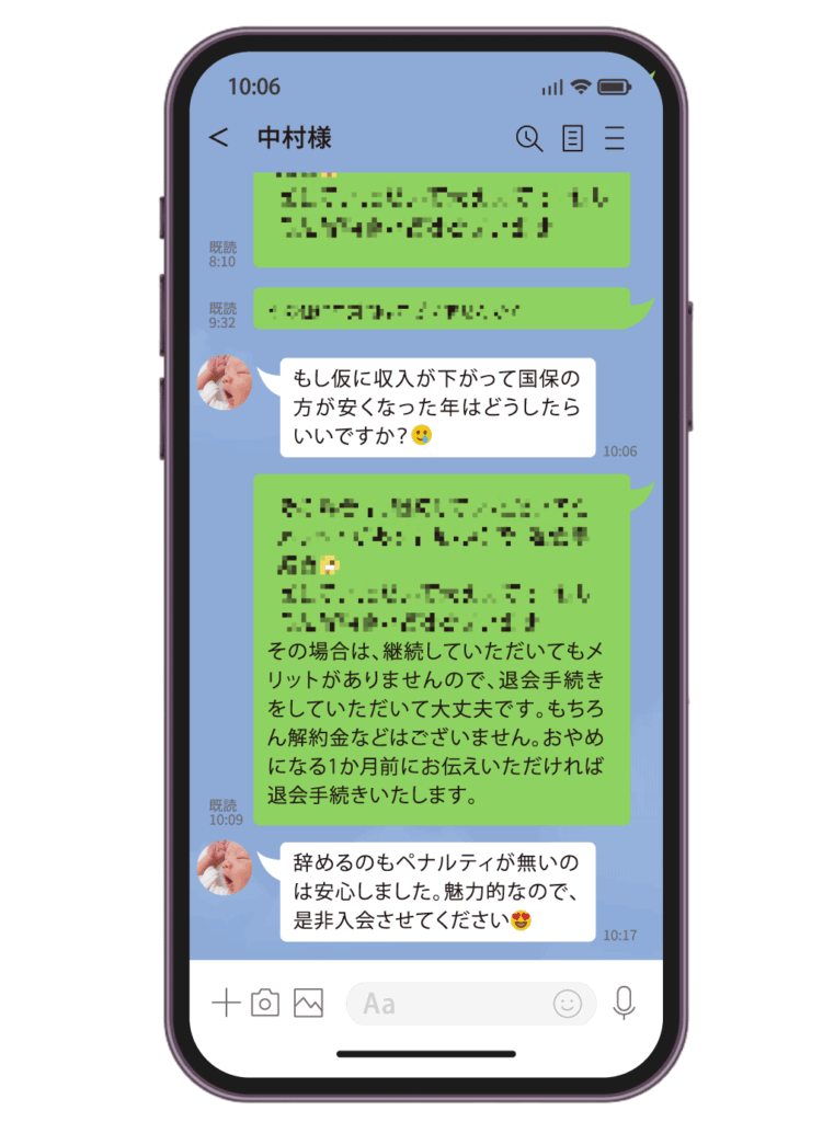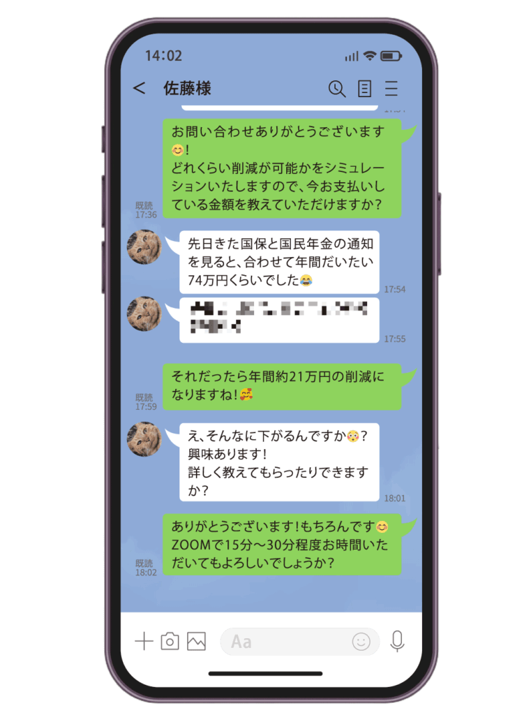 LINEのチャット上で、いくつかの質問に答えるだけで、私たちがあなたの状況を分析し、見直しの可能性をわかりやすくお伝えします。もちろん、無理な勧誘や営業は一切なし。
